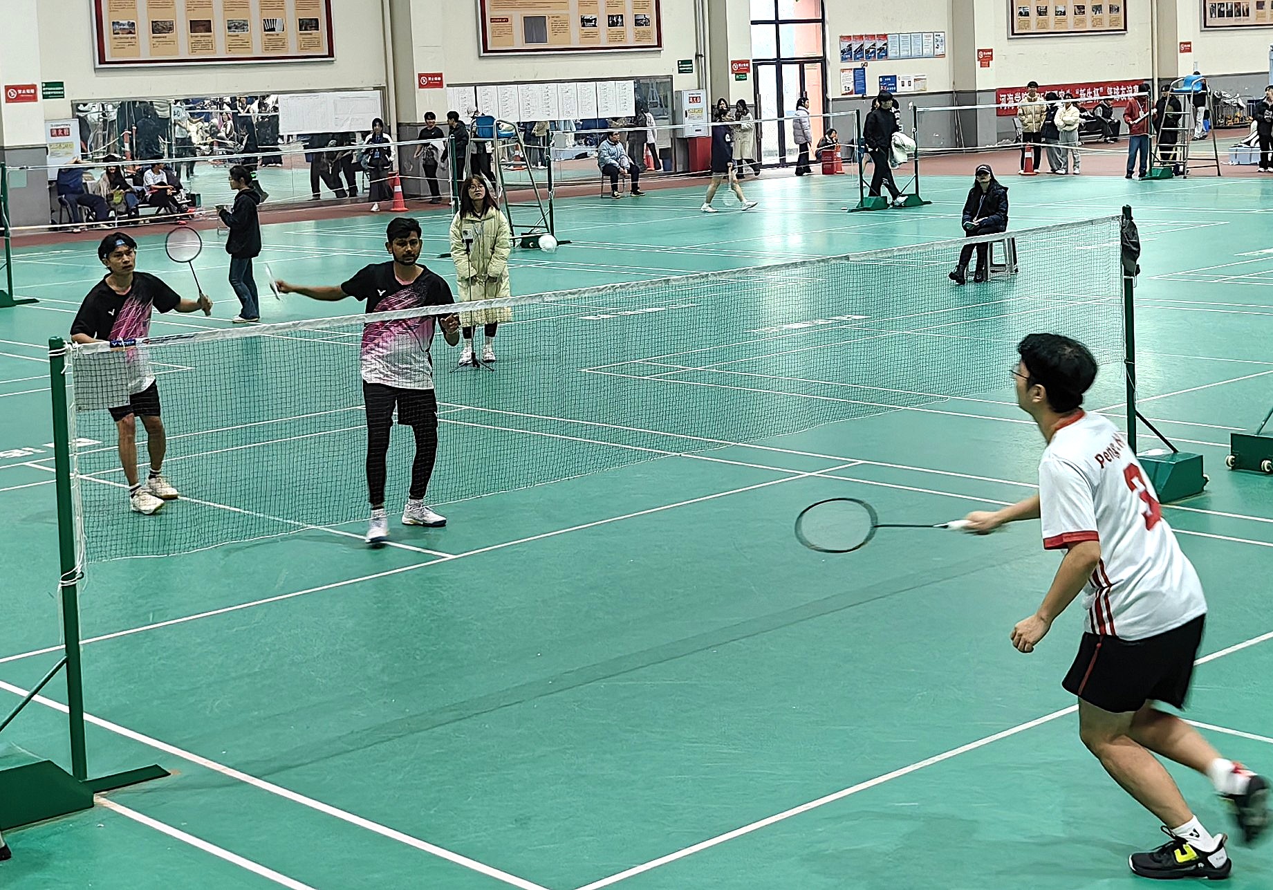 比赛现场气氛热烈、秩序井然。选手们精神饱满、斗志昂扬,精准的吊球、凌厉的扣杀等精彩场面不断,引来观众阵阵喝彩。队员之间配合默契,中外学子在赛场上相互切磋,彼此交流,共同诠释着体育精神的魅力,充分展现了交大学子的拼搏精神,工作人员各司其职,共同保障赛事流畅进行。