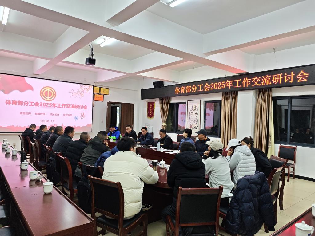 2025 年 11 月 28 日下午,重庆交通大学科学城校区体育部会议室气氛热烈,体育部分工会 2025 年工会工作交流研讨会在此顺利召开。体育部党总支书记、主任隆承宏,正处级组织员王祥林,以及体育部 20 位教职工代表齐聚一堂,共同回顾2025年体育分工会工作成效,共商未来发展蓝图。